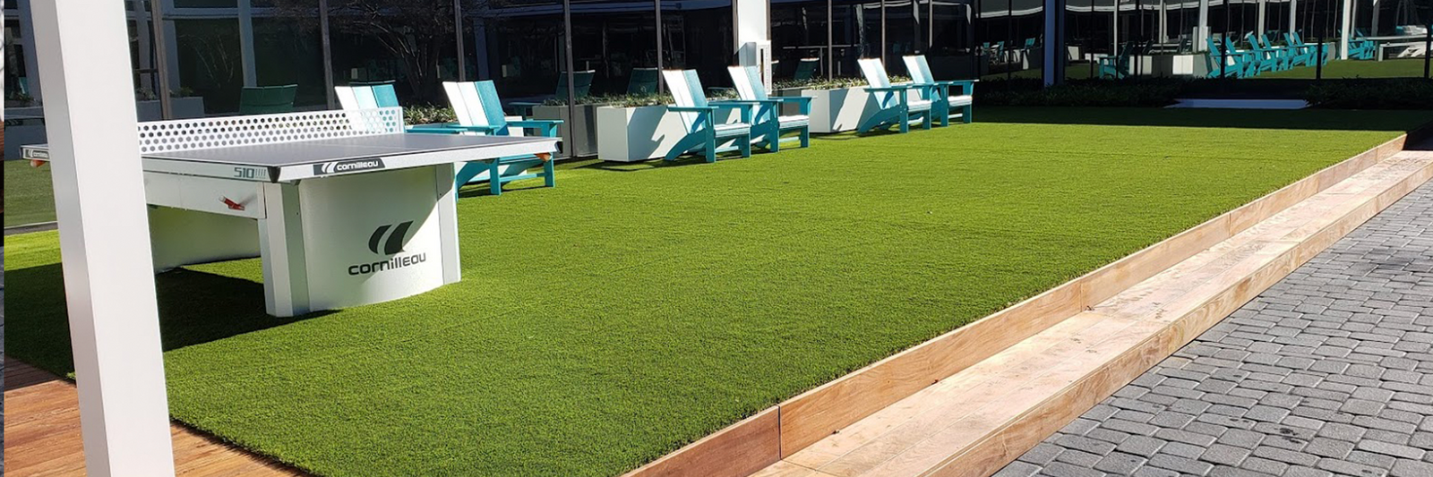 Raise floors featuring artificial turf, rubber flooring or other non weight bearing surfaces require additional substrate support. Our Deck Turf FRP (Fiberglass Reinforced Plastic) panels install over our pedestal system providing a structural floor to lay turf as well as wood deck tiles, porcelain pavers, concrete pavers or any other exterior floor desired. These lightweight grated panels provide unparalleled performance to allow mixed flooring materials to be used seamlessly in any application including pool surrounds, outdoor terraces, rooftop decks, patios, balconies and other exterior areas
